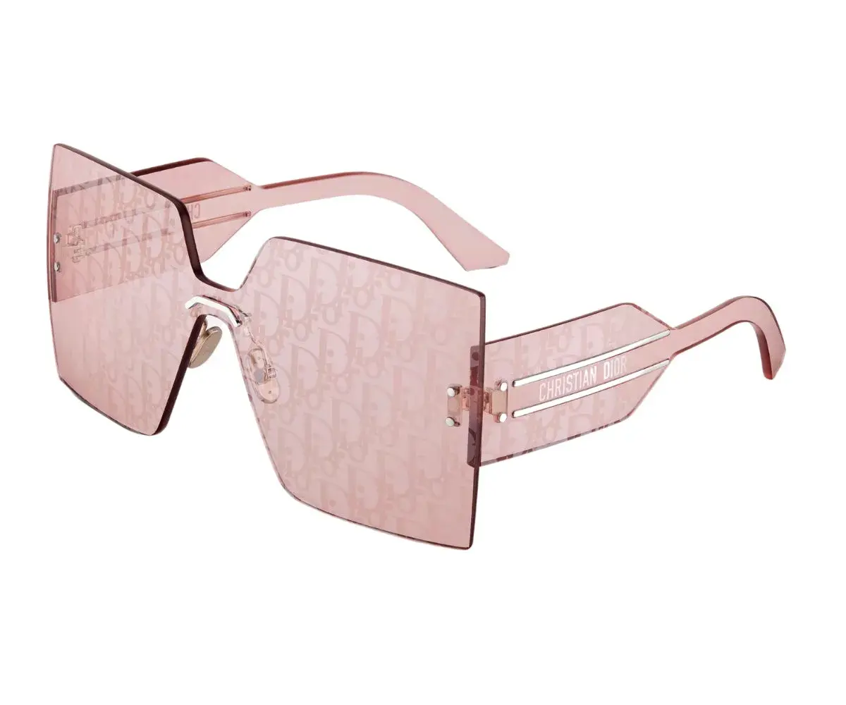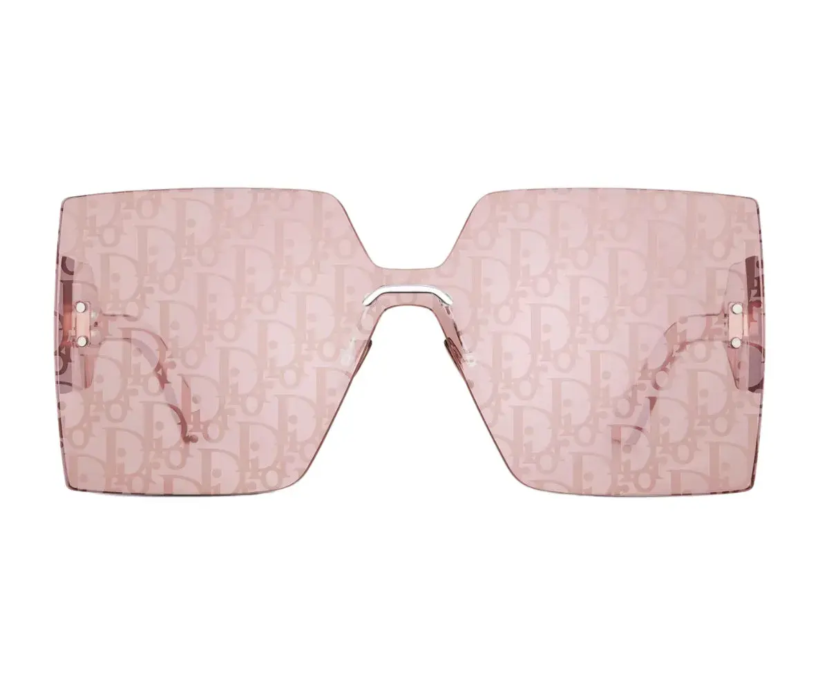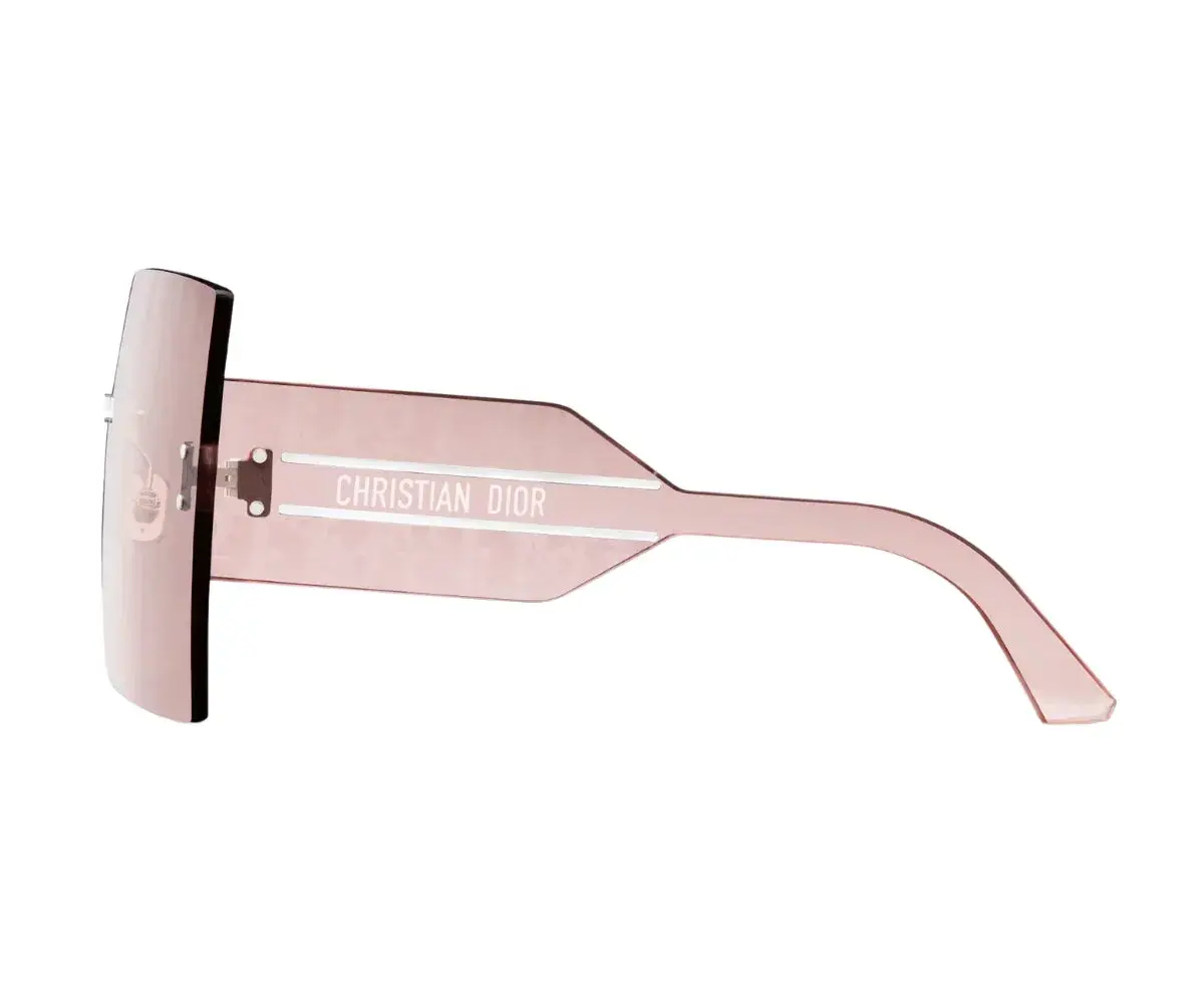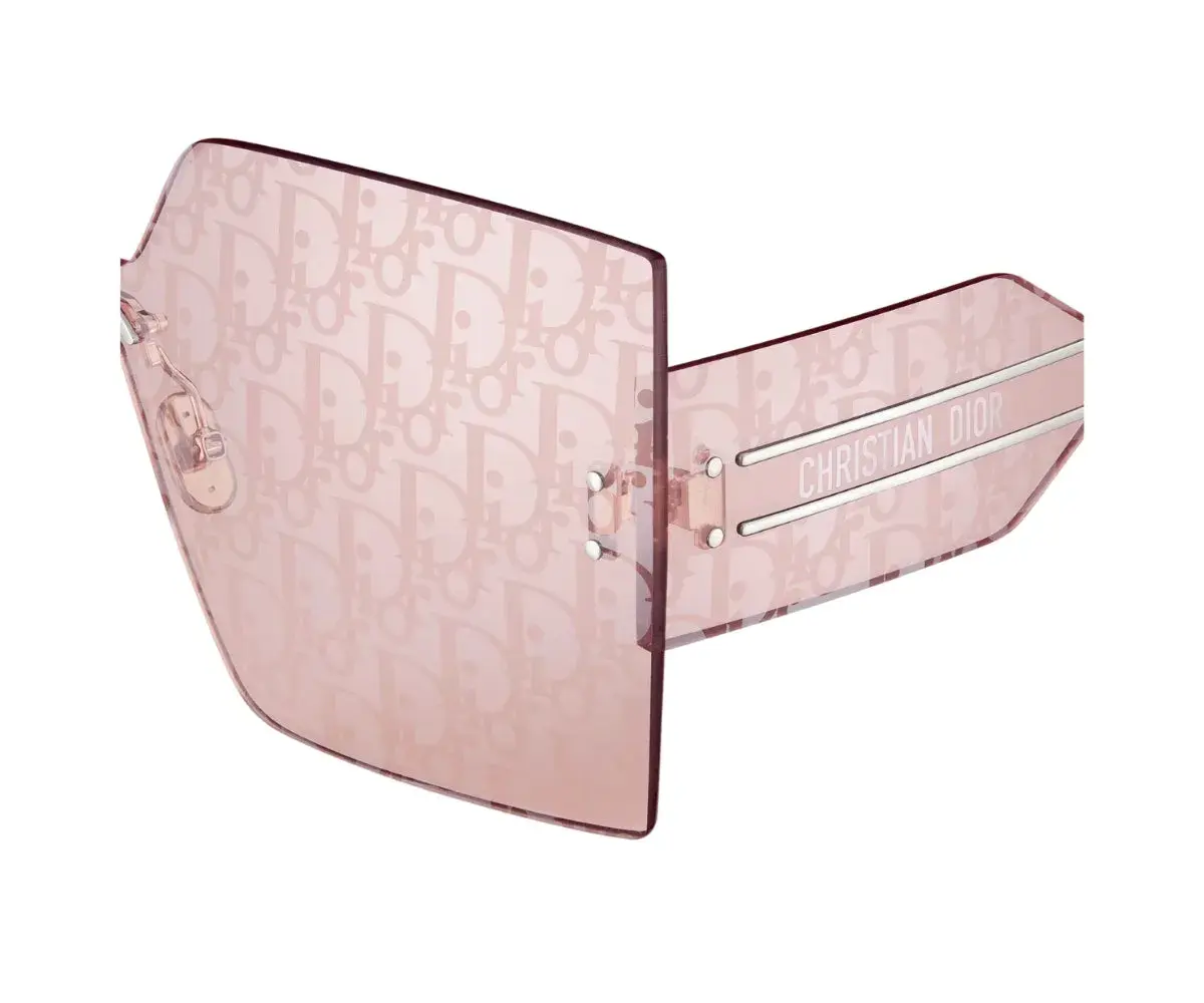 The DiorClub M5U sunglasses stand out with a graphic and lightweight aesthetic. Showcasing House codes, the frameless square mask shape features a single lens and large pink and silver-finish Dior Oblique spoilers. Completed by silver-tone Christian Dior temples, the sunglasses can lend a sportswear touch to any look.